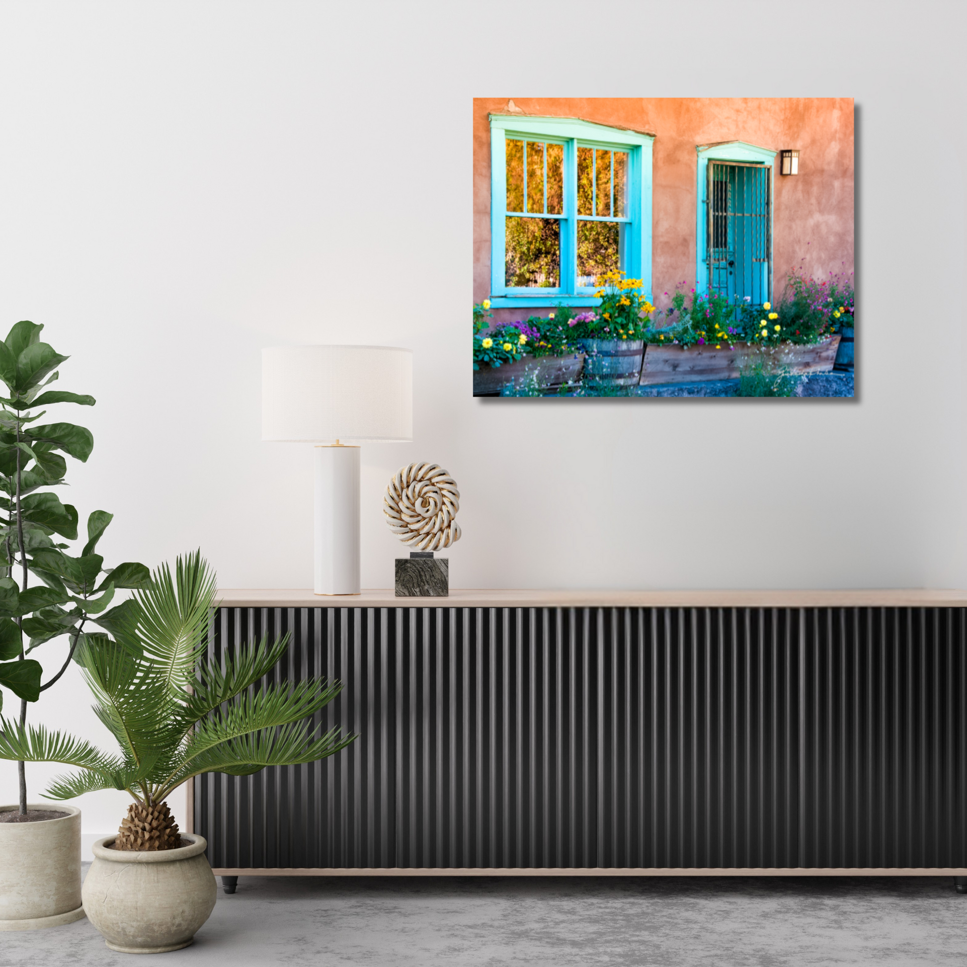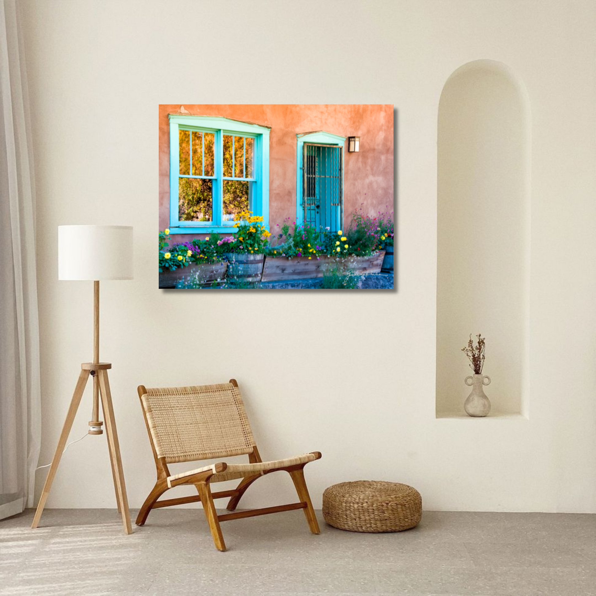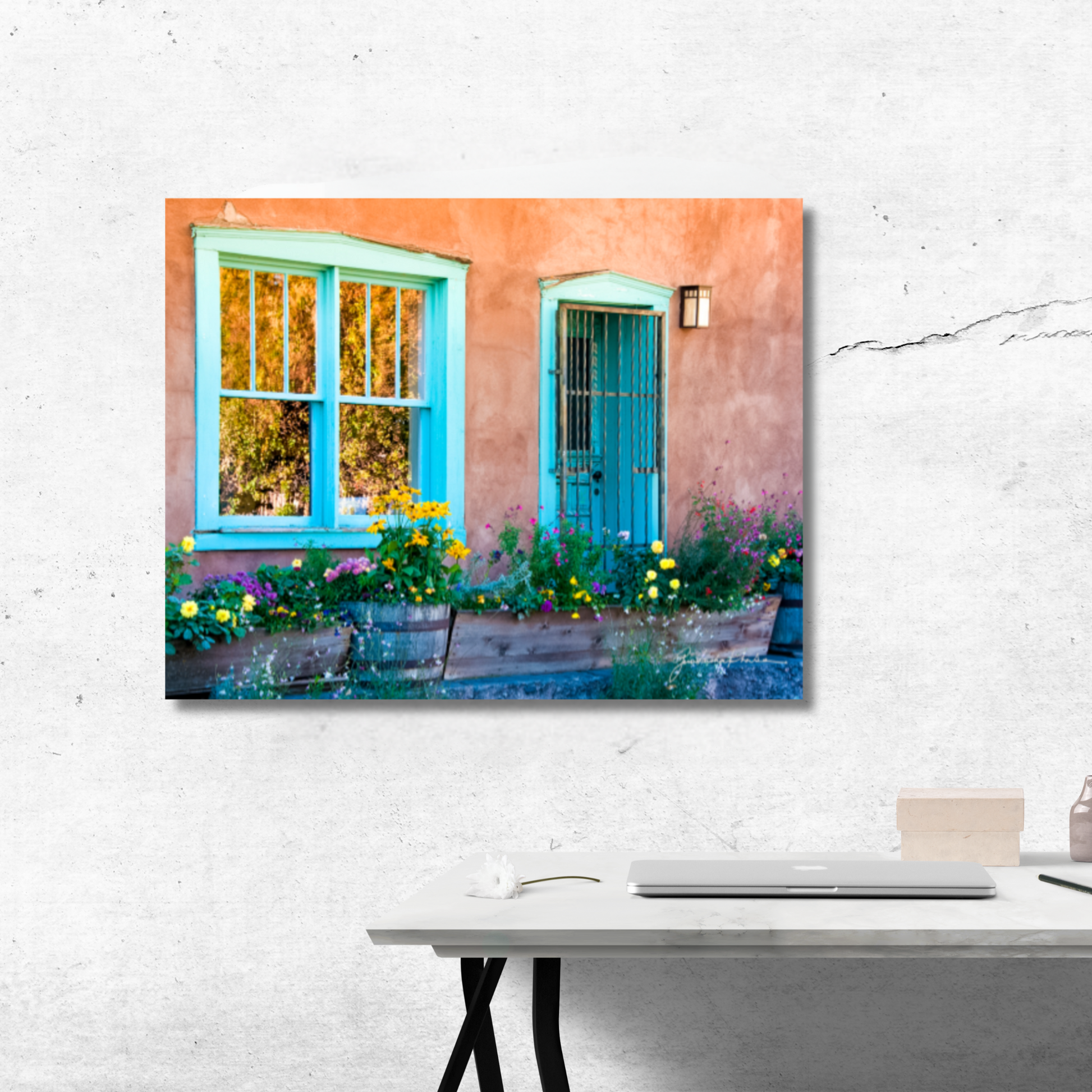 Canyon Road reflects the soul of Santa Fe, where old adobe structures carry the weight of memory while vibrant flowers spill forth with new life. This harmony of opposites speaks to the beauty of resilience—that even in what is weathered and worn, fresh possibility emerges. The scene is a reminder that we, too, carry both the stories of the past and the blossoms of the present, forever living at the crossroads of tradition and transformation.