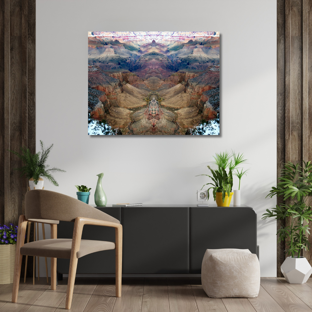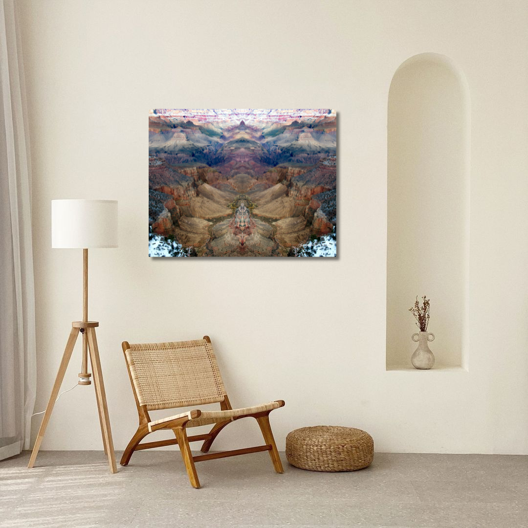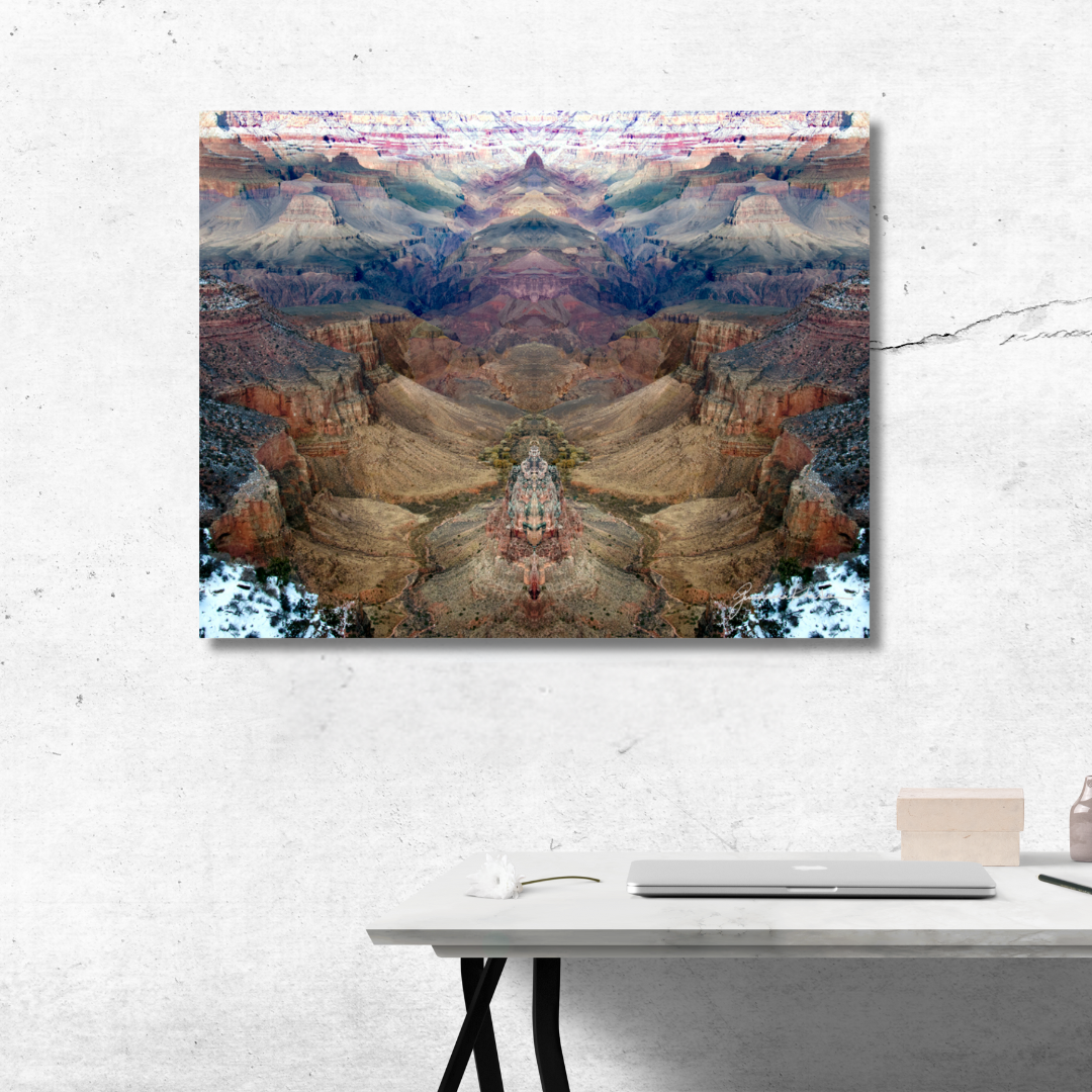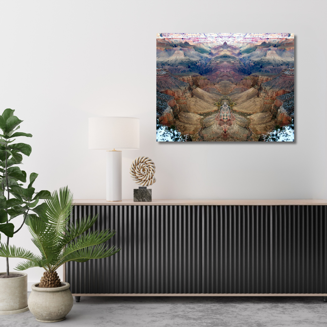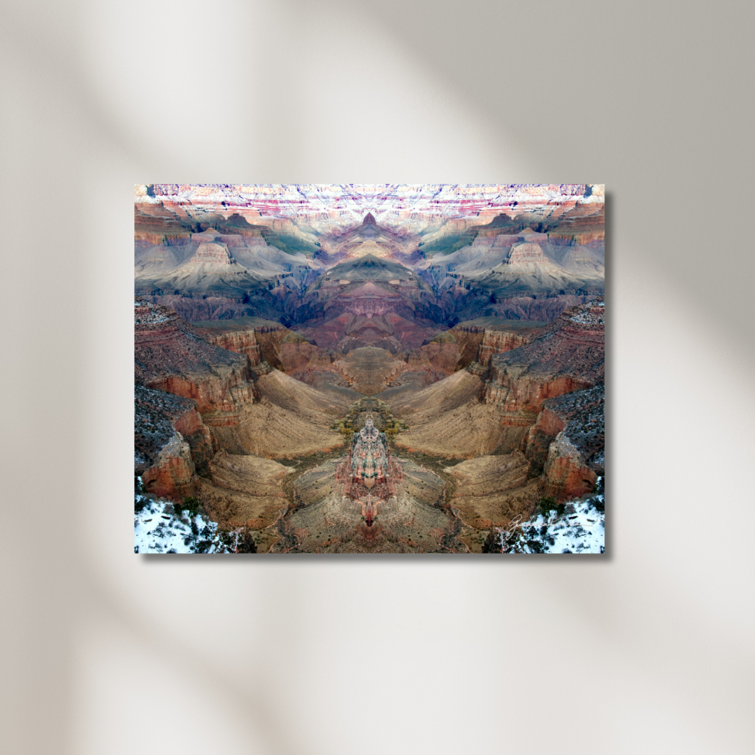 This mirrored view of the Grand Canyon invites us to reflect on the immeasurable patience of creation itself. Formed over millions of years, each ridge, curve, and layer carries the story of time’s slow shaping. Just as the canyon was carved by steady waters and shifting earth, so too are we shaped by the currents of our own lives. This piece reminds us to trust the process—to honor the long unfolding of our journey, knowing that even in moments of erosion, beauty and wisdom are being revealed.